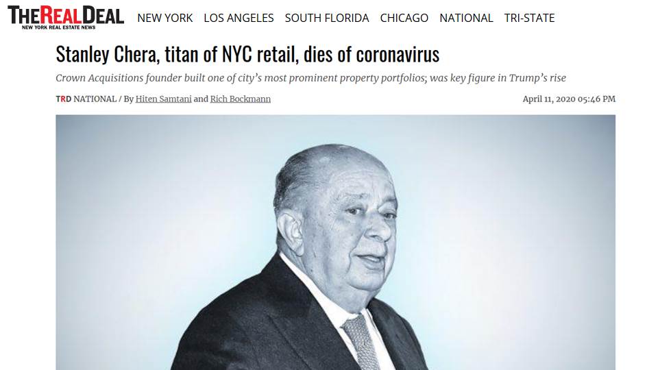 President Trump's good friend Stanley Chera died of COVID-19 on Saturday, April 11th. The Real Deal reported: